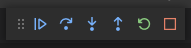 - 디버거가 Breakpoint에서 멈추는 것을 확인할 수 있고 (아주 작은) 디버거 UI에서 버튼을 눌러가며 디버깅을 할 수 있습니다.