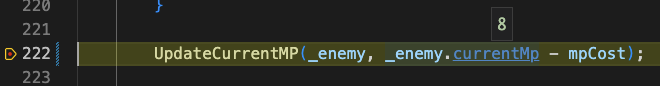 유니티 개발을 할 때 Debugger는 매우 유용합니다. 디버거를 사용하지 않으면 Debug.Log()를 사용하여 디버깅을 하는 것보다 훨씬 빨리 디버깅을 할 수 있습니다. 디버거를 사용하면 원하는 코드 줄에 breakpoint를 잡아 그 코드가 줄 시점에서의 변수에 담긴 값들을 알 수 있기 때문입니다. 편집기 변수에 마우스만 올리면 해당 변수의 값 혹은 객체라면 가진 값들을 모두 보여줍니다.